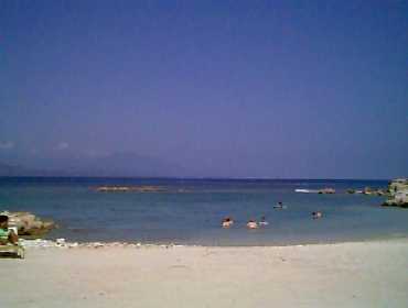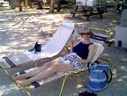 | Cathy, chillin' on the beach. | Here I am, headed for the water. | |